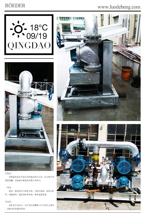 真空系統(tǒng)的基本原理是,利用凸輪轉(zhuǎn)子泵產(chǎn)生的負(fù)壓來抽吸來自便器、洗手盆、淋浴器等的污水和污物??奢斔皖w粒物、纖維,可氣液固三相混輸,各種突出性能都得益于該系統(tǒng)的關(guān)鍵設(shè)備—羅德凸輪轉(zhuǎn)子泵。